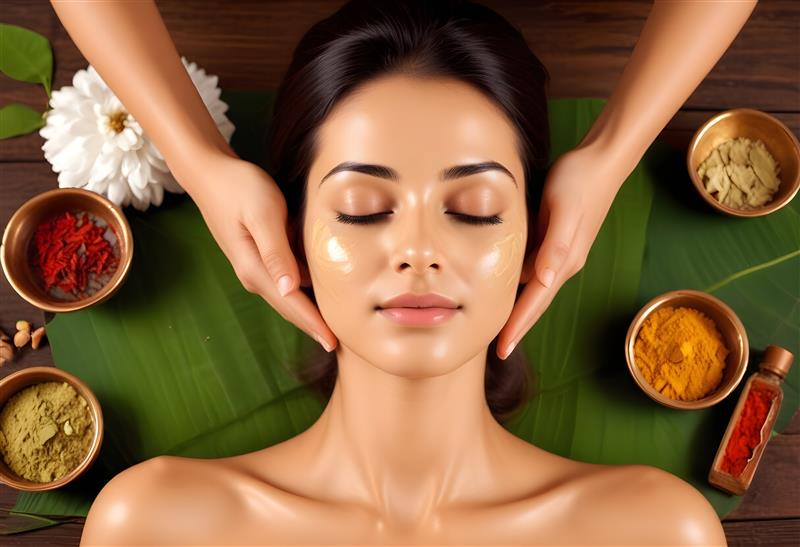 Your session begins with a gentle cleansing followed by a therapeutic facial massage using a customized blend of warm, herb-infused oils. This is often followed by the application of a nourishing herbal pack, which helps to draw out impurities and tighten the skin. The therapy also includes stimulation of key pressure points (Marma points) to improve circulation and energy flow to the face.
