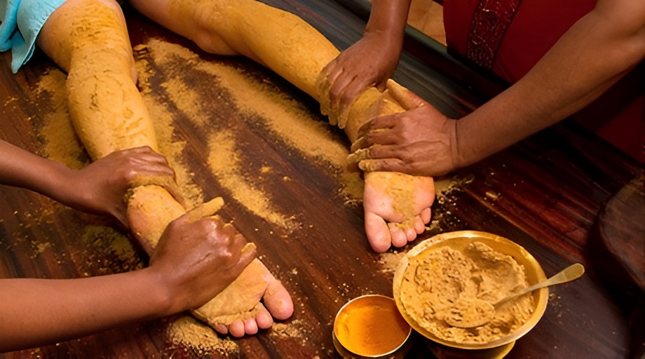 The therapy involves gentle, rhythmic strokes tailored to your body. The warm, medicated oil is applied all over your body, from head to toe, allowing it to penetrate deeply into the skin. The treatment typically lasts one hour.